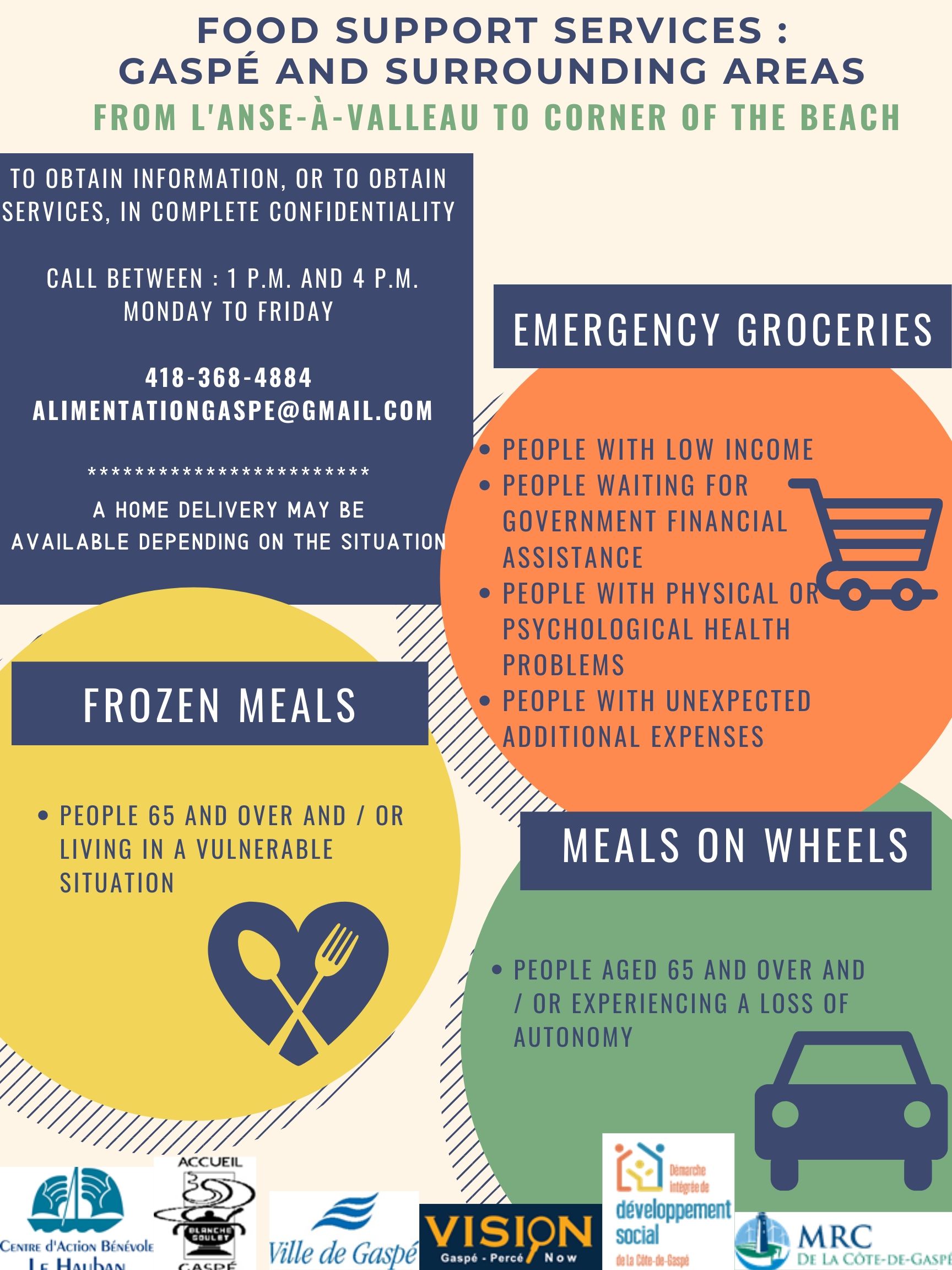 FR – Répertoire des services essentiel Côte-de-Gaspé | Dernière mise à jour | 29 juin 2020 Télécharger ENG – Essential services directory Côte-de-Gaspé | Last update | June 29th 2020Télécharger FR – Affiche service de soutien alimentaire | Grand GaspéTélécharger ENG – Food support services | Gaspé and surrounding areasTélécharger FR – Services de soutien à la population de GaspéTélécharger ENG – Support Services for the population of GaspéTélécharger FR – Services de soutien à la population de l’EstranTélécharger FR – Services de soutien à la population de MurdochvilleTélécharger ENG – Support Services for the population of MurdochvilleTélécharger